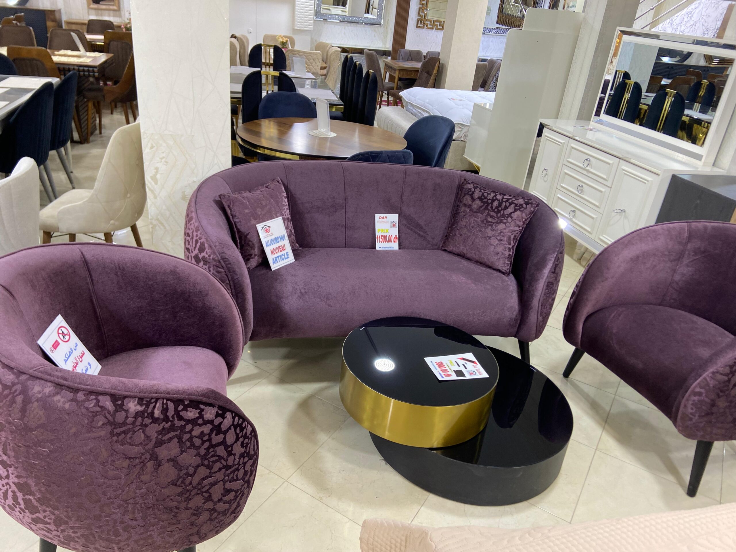 SALON TURQUE 2 PLACES + 2 FAUTEUILS ET 1 TABLE BASSE DE SALON (L=1,70m x l=90cm)